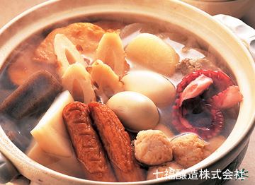 (3)を煮汁ごと取り分けて、お好みで溶き辛子をつけて頂きます。